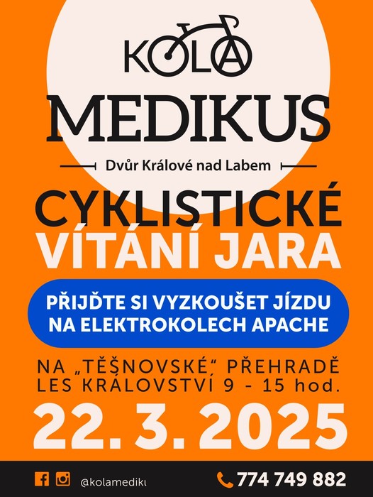 Cyklistické vítání jara na přehradě Les Království již tuto sobotu 9-15h. Přijďte si vyzkoušet adrenalin na elektrokolech Apache!