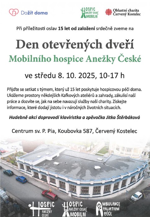 Ve středu 8. 10. 2025 se od 10:00 hod. do 17:00 hod. uskuteční Den otevřených dveří v Mobilním hospicu Anežky České v Červeném Kostelci.