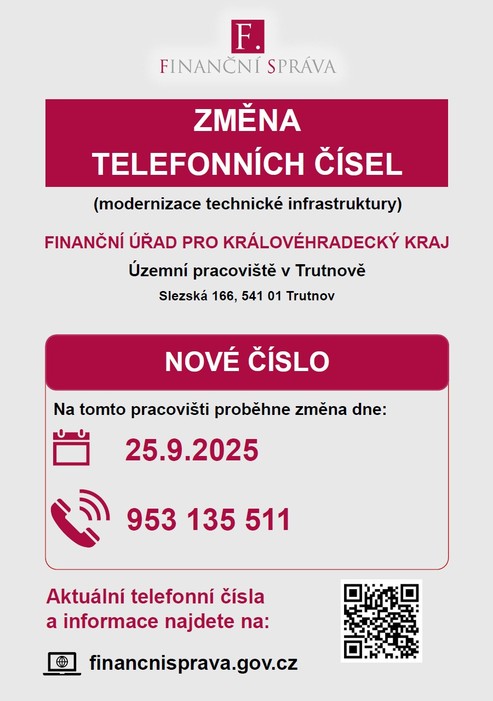 Finanční úřad Trutnov - změna tel. čísla