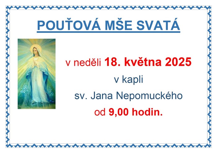 Zveme Vás na Pouťovou mši, která se uskuteční v neděli 18. května 2025.