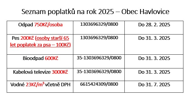 Vážení spoluobčané, v příloze naleznete seznam poplatků na rok 2025.