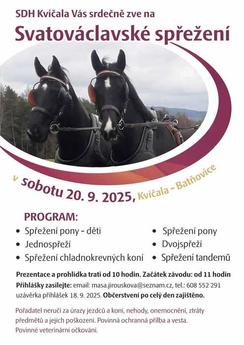 SDH Kvíčala Vás zve na Svatováclavské spřežení v sobotu 20. 9. 2025.