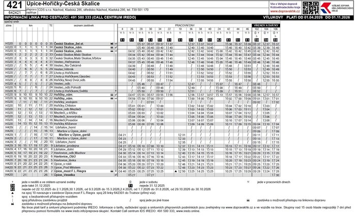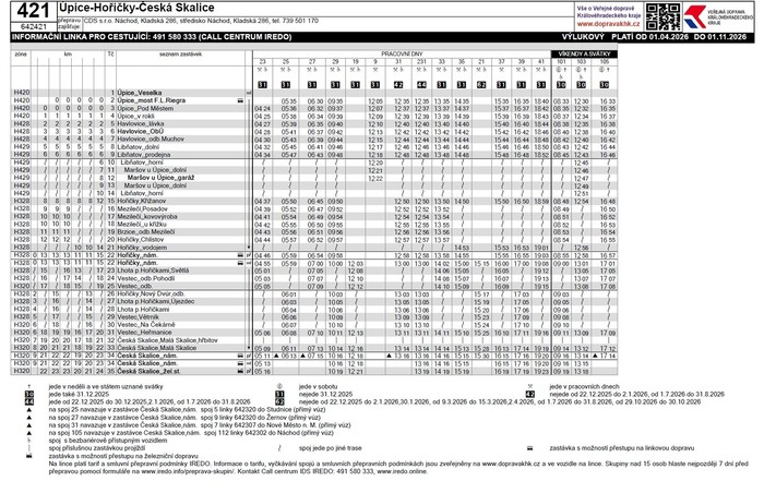 Vážení spoluobčané, na poslední chvíli odbor dopravy KHK upravil ranní spoj linky 421. První spoj z Maršova do Úpice pojede již 4:21 (původně 4:23), první spoj z Úpice na Hořičky vyjede již 4:24 (původně 4:27). Jízdní řád naleznete v příloze.